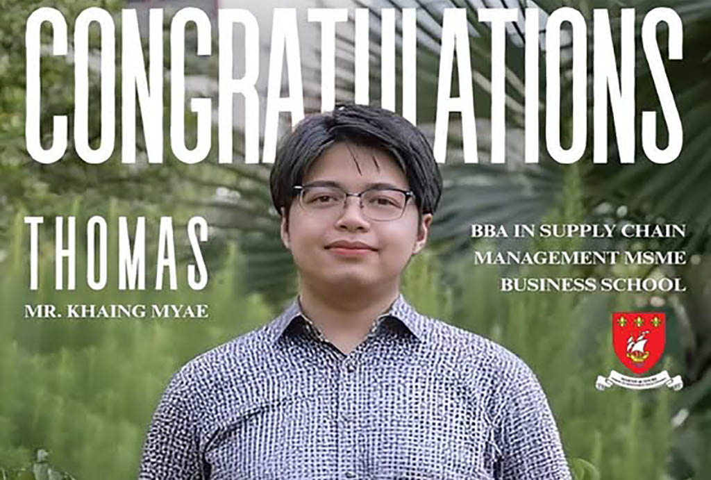 Congratulations to Khaing Myae (Thomas), an alumnus, BBA in Supply Chain Management, MSME Business School, Assumption University of Thailand