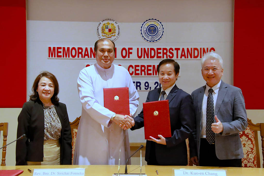 On September 9th, 2024, Assumption University President, Rev. Bro. Dr. Sirichai Fonseka, and Tunghai University President, Kuo-en Chang, signed a Memorandum of Understanding (MOU) at our Suvarnabhumi Campus. Our President, Rev. Bro. Dr. Sirichai Fonseka, emphasized that the collaboration will foster multicultural integration, boost international competitiveness, and jointly cultivate future leaders.
