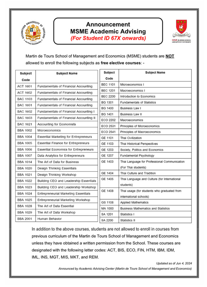 | GE 1403 | Thai Language for Professional Communication (For Thai students) | |