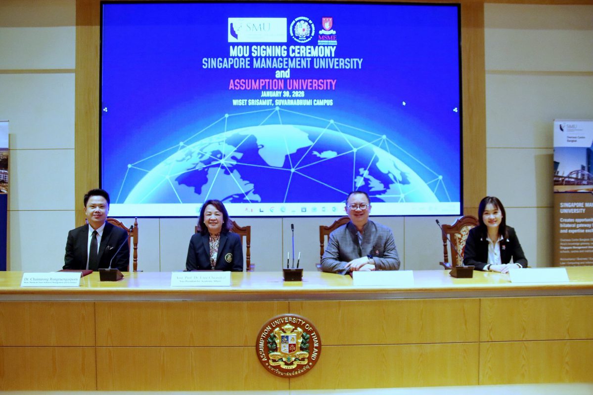 The MSME Business School of Assumption University of Thailand and Singapore Management University (SMU) officially signed a Memorandum of Understanding. This agreement marks an important step in their academic partnership.