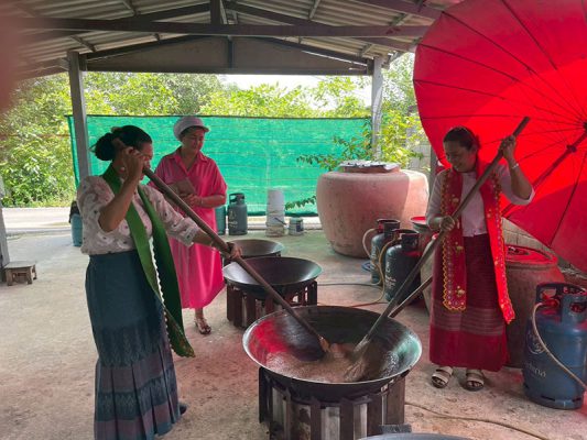 On July 8, 2025, MSME Business School students and faculty, supported by the Office of the Permanent Secretary, Ministry of Higher Education, Science, Research and Innovation (MHESI), visited the Ruangkhao Community Enterprise (วิสาหกิจชุมชนรวงข้าว), Pathum Thani under the project “Development of Local Desserts’ Identity of the Mon Community for Sustainable Community Development.”