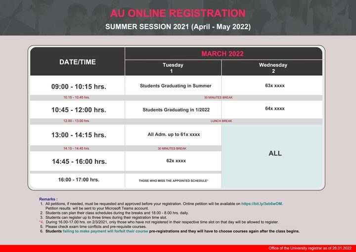 Registration 3/2021 (summer) February 17, 2022 Pisal Setthawong Current Student News, Student Registration 3/2021 (summer) Share This Twitter Facebook LinkedIn Email