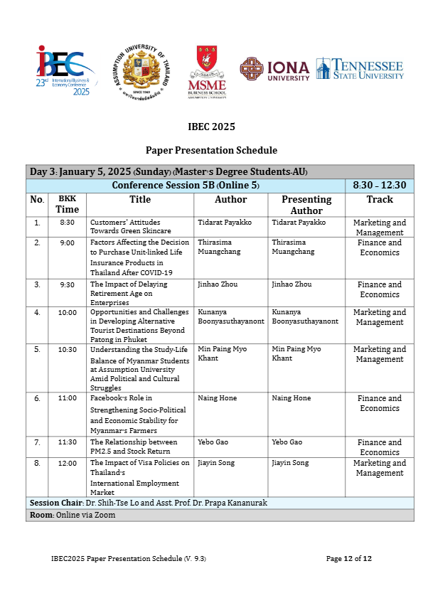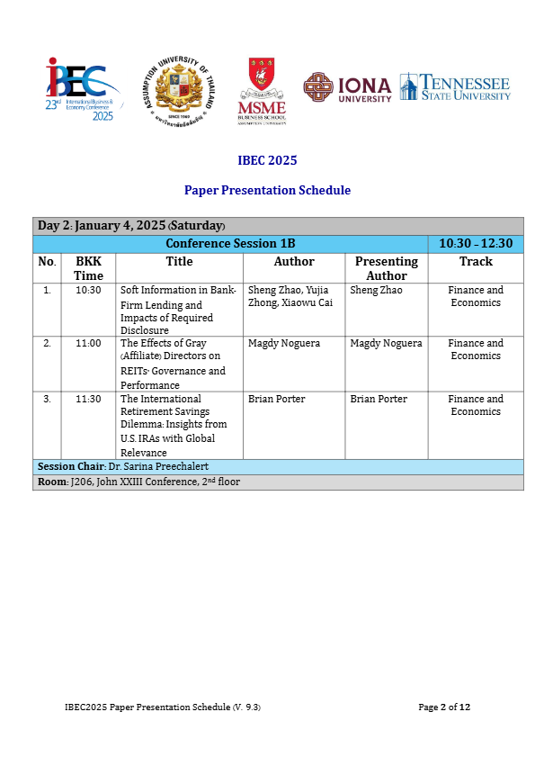 Download IBEC 2025 Paper Presentation Schedule (Updated Jan 3)